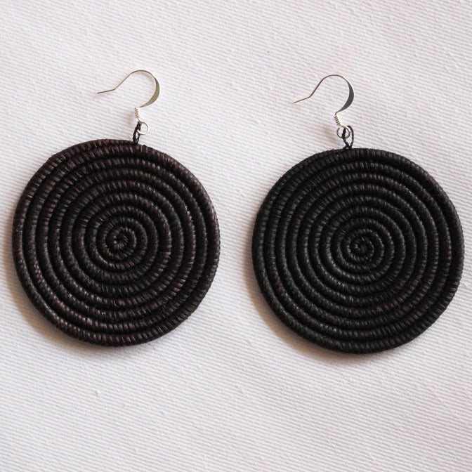 Lightweight and fun to wear, these statement earrings are woven from natural sisal fibres. The weaving technique is taken from the age-old craft of weaving traditional Rwandan baskets.